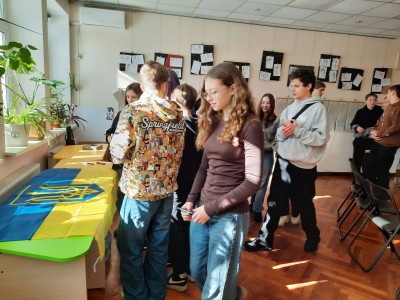 На завершення зустрічі ліцеїсти відвідали Світлицю Української Гідності та підписали прапор словами вдячності нашим захисникам. А учень 7-А класу Юрій Бараненко зачитав авторського вірша, присвяченого Дню Героїв Небесної Сотні.