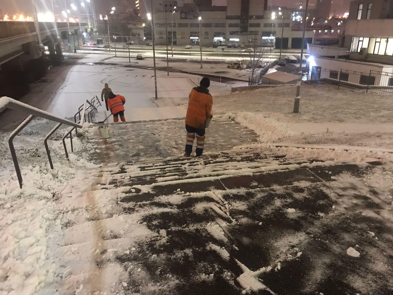 Упродовж ночі у столиці працювали 309 одиниць спецтехніки. Протиожеледними засобами, в першу чергу, обробляли мости і шляхопроводи, підйоми та спуски, покриття із бруківки, тротуари. А бригади з ручного прибирання – зупинки, вузькі тротуари, сходи підземних і надземних переходів.