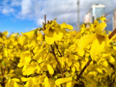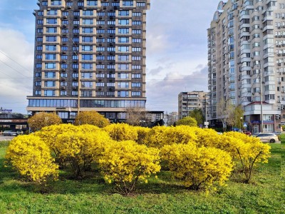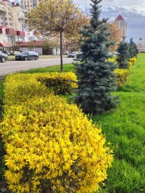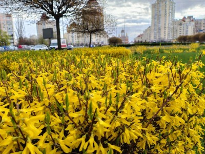 У квітні стартує сезон активного квітування кущів форзиції. Яскраво-жовті квіти наповнюють зелені простори, стаючи однією з головних прикрас парків, скверів, транспортних розв’язок та бульварів.