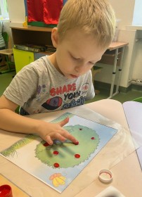 Вчора у відділенні денного перебування Центру комплексної реабілітації для дітей та молоді з інвалідністю Оболонського району відбувся творчий захід, який подарував дітям безліч позитивних емоцій та відкриттів. Малюючи осінні яблуневі дерева, діти поринули у світ кольорів та фантазії, використовуючи незвичайну техніку.