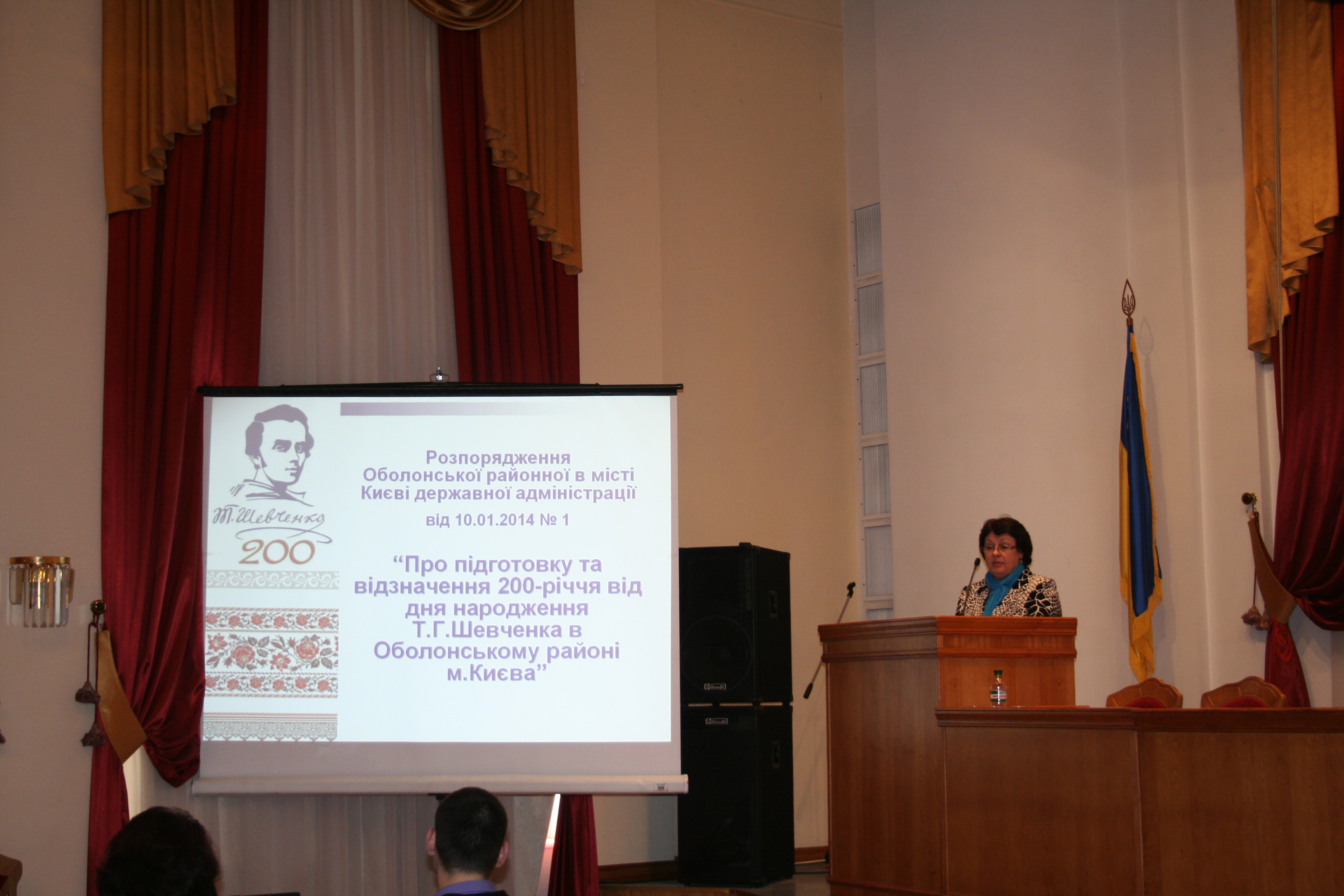 Заступник начальника управління культури, туризму та охорони культурної спадщини Терехова Любов Михайлівна доповіла учасникам наради про районні заходи з відзначення 200-річчя від дня народження Т.Г.Шевченка, що відбуваються в Оболонському районі.