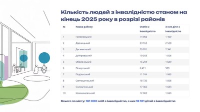 За її словами, наразі у столиці проживають понад 160 тисяч людей з інвалідністю, з них 16 тисяч – діти. Під час планування мережі реабілітаційних центрів і соціальних послуг місто враховує як кількість мешканців, так і реальні потреби районів. Зокрема, найбільше осіб з інвалідністю зареєстровано в Дарницькому районі.