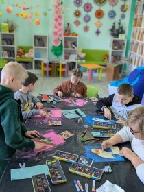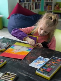 Живопис у бібліотеці ім. Олени Пчілки. Заняття в майстерні Анастасії Лівенської було присвячене анімалістиці. Діти працювали у змішаній техніці (гуаш та пастель), що дозволило їм глибше зрозуміти принципи побудови форми та передачі фактури у мистецтві.