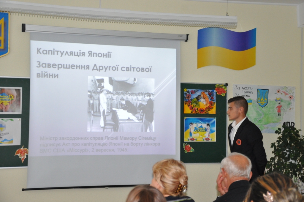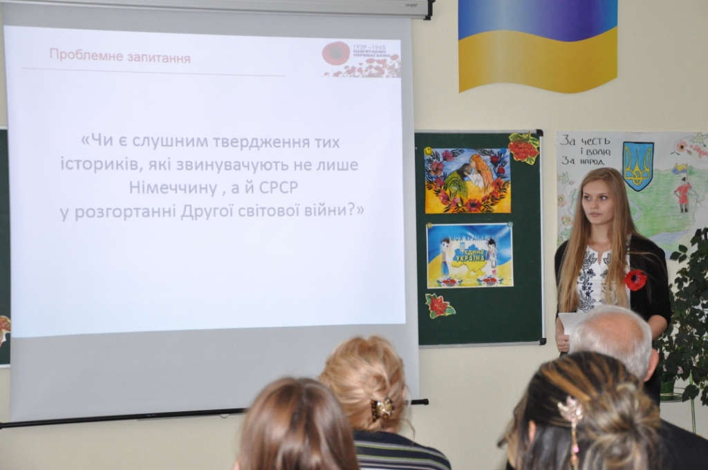 У гімназії «Потенціал» в рамках відзначення 70-річчя завершення Другої світової війни відбулась учнівська конференція за участю учнів 11-А та 11-Б класів, підготовлена та проведена вчителем історії Жилюк Л.І. На заході були присутні заступник директора з виховної роботи Білик О.В., вчитель Захисту Вітчизни, капітан I рангу Левчук В.Г., вчитель інформатики Солоденко К.С., батьки учнів.
