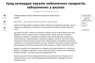 Уряд України затвердив перелік заборонених у школах небезпечних предметів, що включає зброю та її імітації