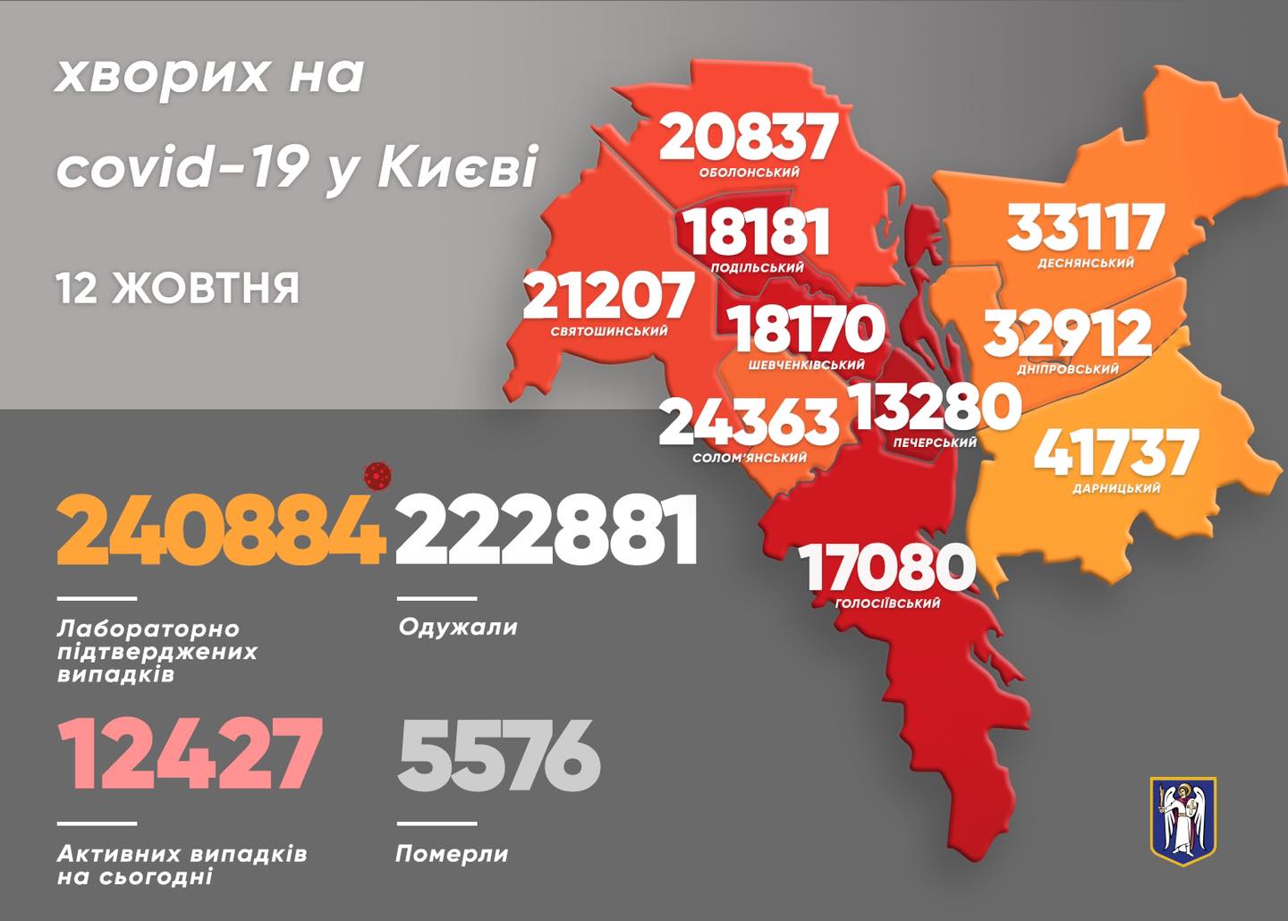 «628 підтверджених випадки захворювання на коронавірус за добу в столиці. Летальних випадків від вірусу – 25. Підтверджених випадків захворювання на сьогодні – загалом 240 884», – повідомив Віталій Кличко на своїй сторінці у Facebook.