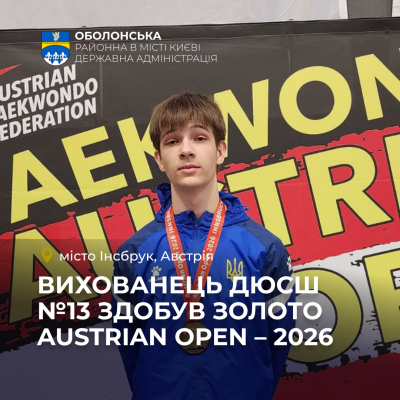 Вихованець ДЮСШ №13 Тимур Голуб здобув золоту медаль на міжнародному рейтинговому турнірі Austrian Open – 2026