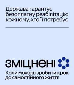 Інформаційна кампанія «Зміцнені» реалізується Національною службою здоров’я України у партнерстві з Міністерством охорони здоров’я України та Міністерством у справах ветеранів України за підтримки проєкту Rehab4U.