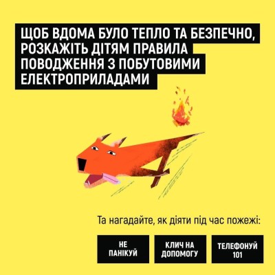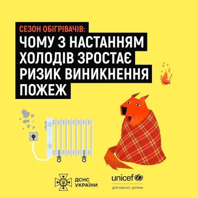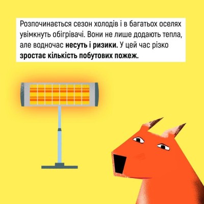 Перегляньте картки з порадами, які допоможуть вам та вашим дітям дотримуватися ключових правил пожежної безпеки під час використання обігрівальних приладів!